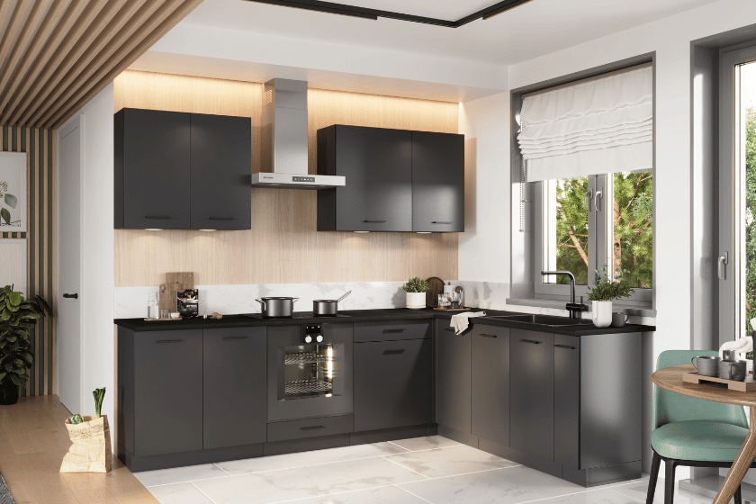 Černá kuchyně v malém prostoru? Ano, i to může fungovat skvěle! Klíčem je světlo. Pokud je kuchyň sice malá, ale dobře prosvětlená denním světlem nebo otevřená do obývacího pokoje, nemusíte se tmavých barev bát. Světlo totiž prostor opticky zvětšuje a dodává mu lehkost.