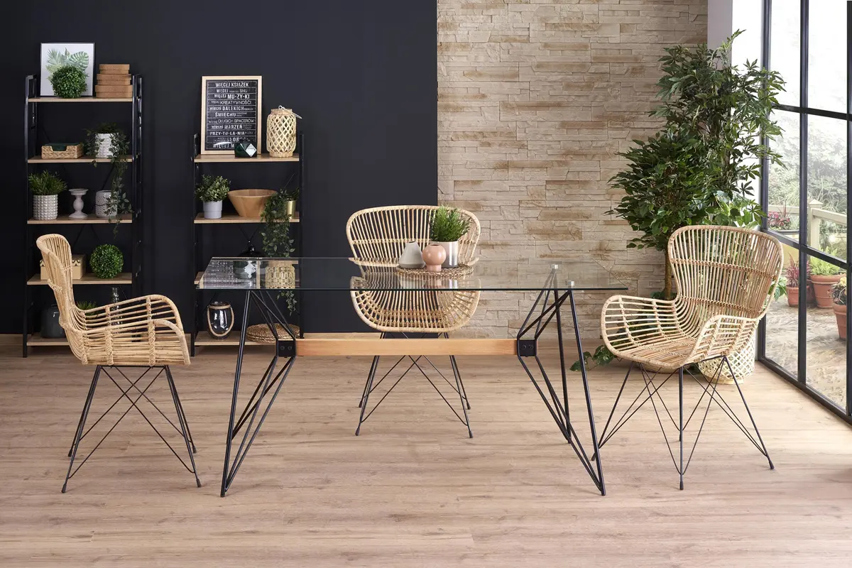 V obývacím pokoji ve stylu boho by neměly chybět rustikální prvky. Je to proto, že tyto dva styly se vzájemně prolínají a harmonicky se propojují. Tímto způsobem můžeme zahřát aranžmá vytvořením jedinečné kompozice. V obývacím pokoji ve stylu boho se vyplatí použít dřevěné dekorace nebo nábytek s přírodní barvou dřeva, například kávový stolek s dřevěnými a kovovými akcenty.