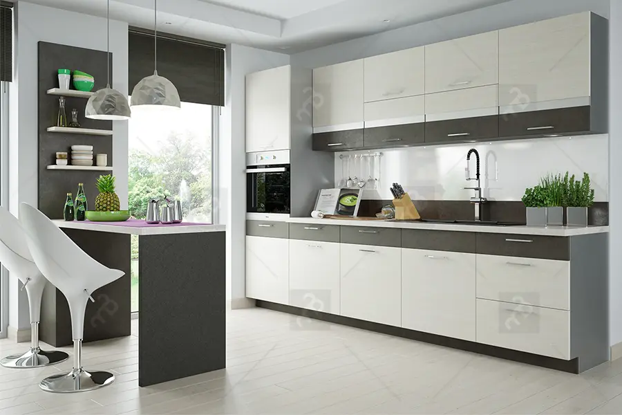 Dvouřadé kuchyně se skládají ze dvou paralelních linií. Obvykle se používají v bytových domech a výškových budovách, protože kuchyně v nich mají často tvar malého úzkého obdélníku. Toto jednoduché řešení zajišťuje optimální provázanost mezi jednotlivými zónami a navíc samotný kuchyňský nábytek vypadá vkusně.