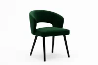 Elegantní tmavě zelený sametový potah v kombinaci s černými dřevěnými nožkami působí luxusně a zároveň moderně. Výrazná barva snadno oživí prostor a dodá mu osobitý charakter, zatímco jednoduché linie a zaoblené tvary židle podtrhují její nadčasový vzhled. Tento design přinese do interiéru harmonii a pocit výjimečnosti.