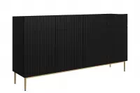 Tato komoda vás uchvátí svým jedinečným designem. Černá barva korpusu a zlaté provedení nožek dodává celku luxusní vzhled. Matný povrch navíc zdůrazňuje sofistikovanost a eleganci tohoto nábytku.