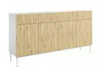 Design této komody je opravdu nádherný. Bílý korpus a přední části v dubu artisan vytvářejí elegantní kontrast, zatímco bílé kovové nožky s gumovou podložkou dodávají moderní vzhled. Reliéfní přední části okouzlí každého hosta.