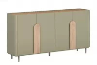 Hledáte prostornou a stylovou komodu, která splní veškeré požadavky na design i funkčnost? Nepřehlédněte naši komodu Amilio 200 cm na nožkách v barvách eukalyptus / dub baltic dune / úchytky dub přírodní.