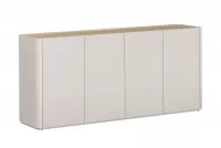 Minimalistický vzhled v kombinaci jemné kašmírové barvy a přírodního dekoru olejovaného dubu vytváří harmonický dojem, který zaujme na první pohled. Hladké přední části bez úchytek podtrhují čistotu designu a přinášejí do prostoru klid a nadčasovou eleganci. Díky neutrálním tónům snadno sladíte tento kus nábytku s dalšími prvky vašeho domova.