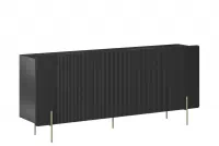 Elegantní kombinace černého matu a zlatých nožek činí z této komody skutečný designový klenot. Její minimalistický vzhled s drážkovanými předními částmi přinese do vašeho obývacího pokoje, jídelny nebo ložnice nádech luxusu. Zlaté kovové nožky dodávají komodě sofistikovaný vzhled a zároveň zajišťují stabilitu.