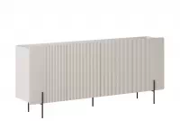 Tato komoda vás okouzlí svým elegantním designem. Kašmírový korpus v matném provedení působí velmi luxusně a je doplněn o horní desku v barvě crema bianca, která dodává celkovému vzhledu na sofistikovanosti. Černé kovové nožky pak celek uzavírájí v moderním duchu.