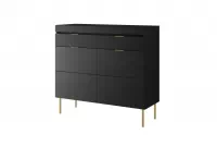 Černá matná povrchová úprava v kombinaci se zlatými detaily vytváří luxusní vzhled, který okamžitě upoutá pozornost. Komoda se stane designovým klenotem vašeho obývacího pokoje, jídelny nebo ložnice. Její sofistikovaný styl snadno zapadne do moderních i klasických interiérů, dodávajíc jim nádech elegance a prestiže.