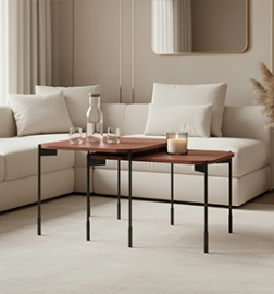 Pokud preferujete industriální nebo loftový styl, ideální pro vás budou stolky kombinující kov a dřevo. Kovové podnože dodají interiéru moderní vzhled, zatímco dřevěná deska přinese do prostoru teplo a přírodní charakter.