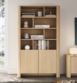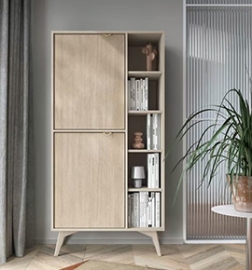 Dvoudveřový regál Lumira - pískový / rybí kost skandi