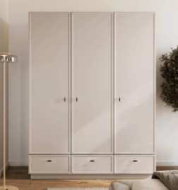 Kvalitní laminovaná deska o síle 15 mm zaručuje dlouhou životnost a odolnost vůči každodennímu používání. ABS hrany chrání skříň před poškozením, zatímco zadní strana z pevné HDF desky přispívá ke stabilitě. Dvě zásuvky s kolečkovými pojezdy umožňují snadný a tichý přístup k uloženým věcem. Celkově skříň nabízí dvě police, dvě zásuvky a dvě šatní tyče, takže každý kousek oblečení najde své místo.