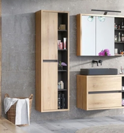 Vysoká koupelnová skříňka Monako Grey Oak 800 - diamantově šedá / dub Hamilton