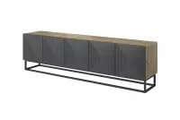 Praktičnost tohoto stolku je zaručena díky jeho rozměrům 200 x 56 x 40 cm, které poskytují dostatek prostoru pro televizi a další předměty. Stolek je navíc vybaven 5 dvířky a 5 policemi, které zajišťují dostatečný úložný prostor.