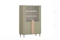Hledáte stylovou vitrínu, která zvýrazní vaše oblíbené předměty a zároveň nabídne praktický úložný prostor? Poznejte vitrínu Amilio 100 cm na nožkách v barvách: eukalyptus / dub baltic dune / úchytky dub přírodní.