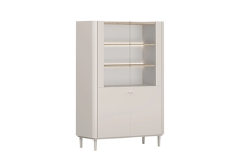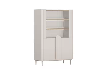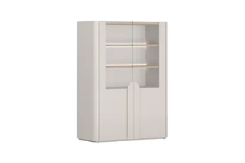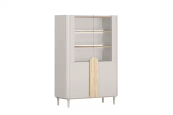 Moderní kombinace kašmírového odstínu s přírodním vzhledem olejovaného dubu vytváří jedinečný vizuální dojem, který okouzlí na první pohled. Hladké přední plochy a prosklené části propůjčují vitríně lehkost, zatímco decentní dřevěné úchyty podtrhují její nadčasový design. Elegantní linie a pečlivé zpracování činí z tohoto kusu nábytku ideální volbu pro každý vkusně zařízený domov.