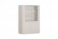 Vitrína Amilio 100 cm dvoudveřová - kašmír / olejovaný dub / úchyty světlý dub