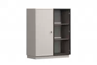 Kvalitní materiály jako melaminová deska o tloušťce 16 mm a přední MDF deska 18 mm zaručují dlouhou životnost a odolnost. Skleněná přední část chrání vystavené předměty před prachem a zároveň umožňuje dokonalý pohled dovnitř. Ocelové panty s tichým zavíráním přináší komfort při každodenním používání, zatímco vnitřní police lze nastavit podle potřeby ve třech úrovních.