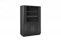 Elegantní černé provedení v kombinaci se zlatými kovovými úchytkami vytváří luxusní vzhled, který okamžitě upoutá pozornost každého hosta. Drážkované přední části podtrhují originální design a přidávají na exkluzivitě, takže vitrína skvěle zapadne do moderních i klasických prostor.