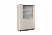Elegantní kombinace kašmírového korpusu, předních částí a kontrastní horní desky v dekoru ořechu vytváří výrazný vizuální dojem, který okamžitě zaujme. Zlaté kovové úchytky podtrhují moderní charakter a dodávají celku špetku noblesy. Drážkované přední části přinášejí originální strukturu, díky které se vitrína stane dominantou každého prostoru.