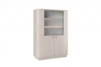 Jemný kašmírový odstín v kombinaci se zlatými kovovými úchytkami vytváří harmonický celek, který působí luxusně i nadčasově. Drážkované čelní plochy dodávají vitríně osobitý charakter a přitahují pozornost, zatímco decentní sokl podtrhuje stabilitu a moderní vzhled. Tato vitrína se stane ozdobou každého prostoru, kde vynikne její estetická hodnota.