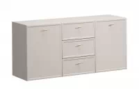 Elegantní kašmírové provedení v kombinaci se zlatými kovovými úchytkami T-bar okamžitě upoutá pozornost a dodá místnosti nádech sofistikovanosti. Minimalistický design s hladkými čely perfektně zapadne do obýváku, ložnice, kanceláře i jídelny a podtrhne současné trendy v bydlení.